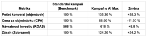 V našem dvouměsíčním testu (listopad 2025 – leden 2026) AI Max zvítězila na všech frontách. Nešlo jen o vyšší zásah, ale o doručení kvalitnějších výsledků při nižších nákladech.